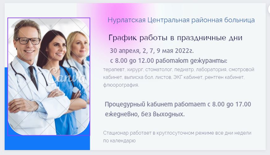 График работы ГАУЗ «Нурлатская ЦРБ» в майские праздники
