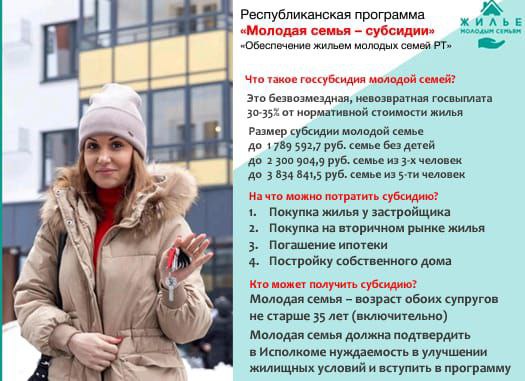 До 30 апреля проходит заявочная кампания и перерегистрация по программе «Обеспечение жильем молодых семей в Республике Татарстан».