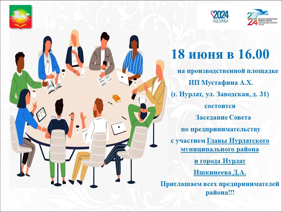 18 июня в 16.00 час. на производственной площадке ИП Мустафина А.Х. состоится ежеквартальное заседание Совета по предпринимательству при Главе Нурлатского муниципального района и города Нурлат Д.А. Ишкинеева.