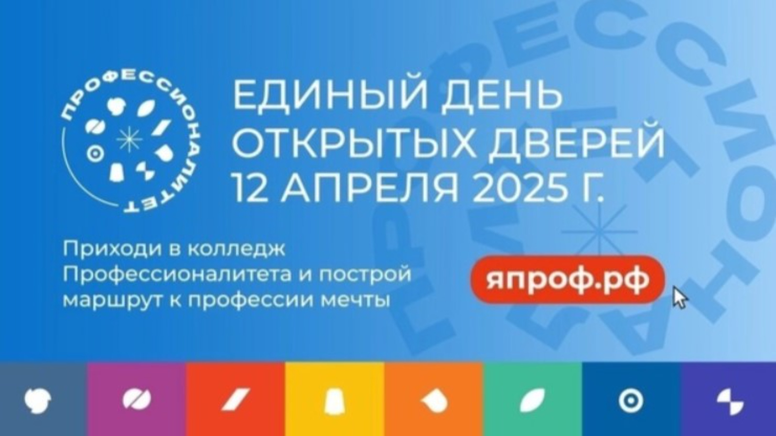 Единый день открытых дверей в колледжах и техникумах России 12 апреля 2025 года пройдет во всех кластерах программы «Профессионалитет» национального проекта «Молодежь и дети».