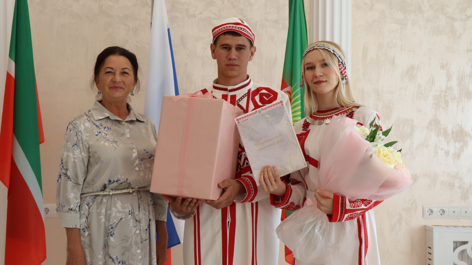 «Сегодня создалась молодая красивая семья. Любите друг друга, уважайте, радуйтесь вместе. Пусть в вашем доме будет тепло и уютно, пусть ваши дети продолжают ваш род, сохраняют культуру, традиции чувашского народа. Этно-свадьба – это очень добрая традиция, мы должны сохранять и беречь свою культуру и довести это до наших детей, внуков и правнуков. Пусть будет у вас все хорошо», – озвучила теплые слова и пожелания Альфия Салиховна и вручила Маланьиным первый семейный документ, памятный подарок и цветы.
