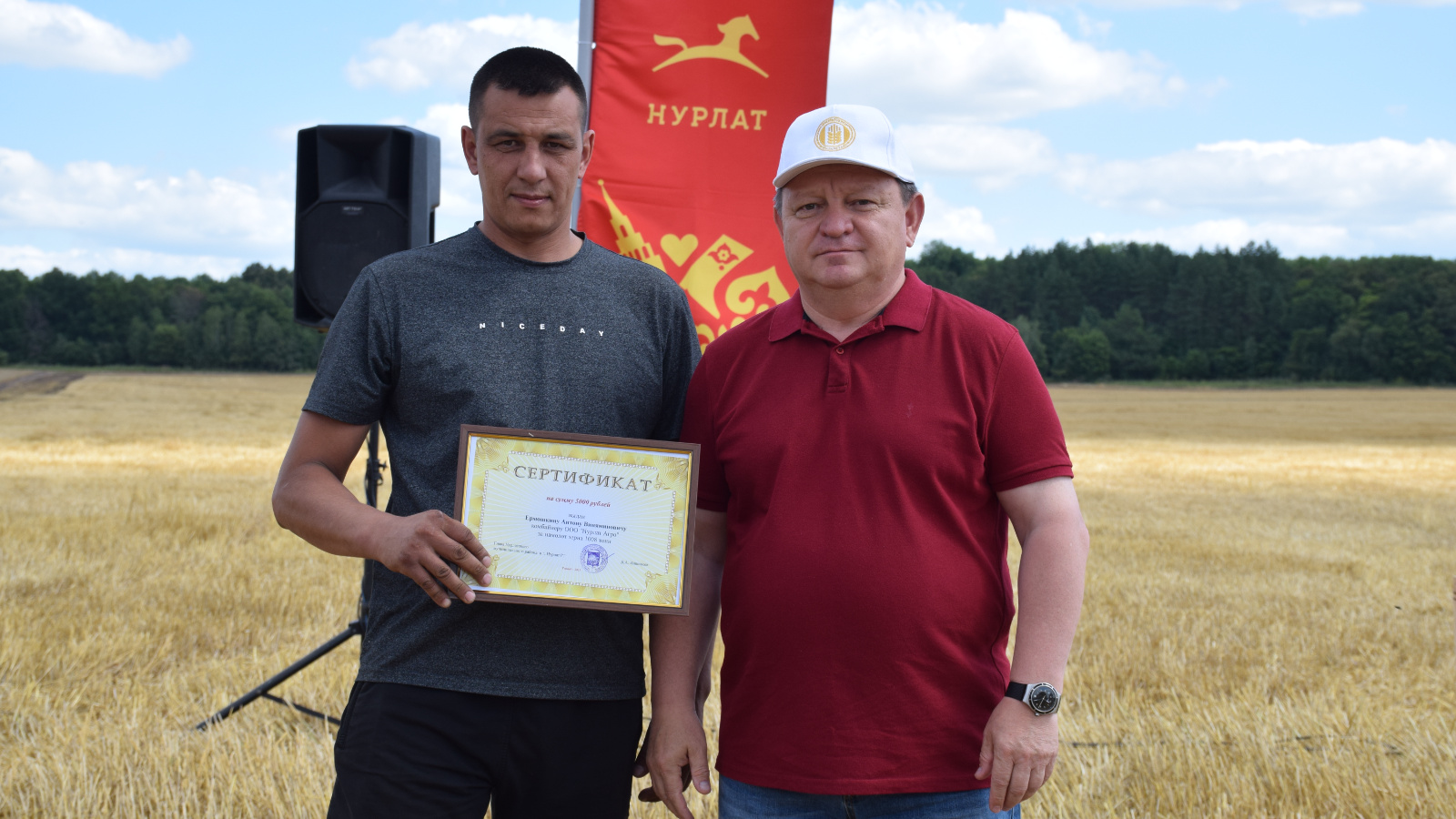 На полях хозяйства «Нурлат-Агро» состоялось награждение первых в этом сезоне комбайнеров-тысячников Нурлатского района. Почетный рубеж намолота в 1000 тонн зерна первыми преодолели работники этого сельхозпредприятия. Глава Нурлатского района Дамир Ишкинееев лично приехал в поле, чтобы поздравить передовиков уборки. В торжественной обстановке он вручил денежные сертификаты Андрею Корнееву, Данилу Магусеву и Антону Ермошкину.