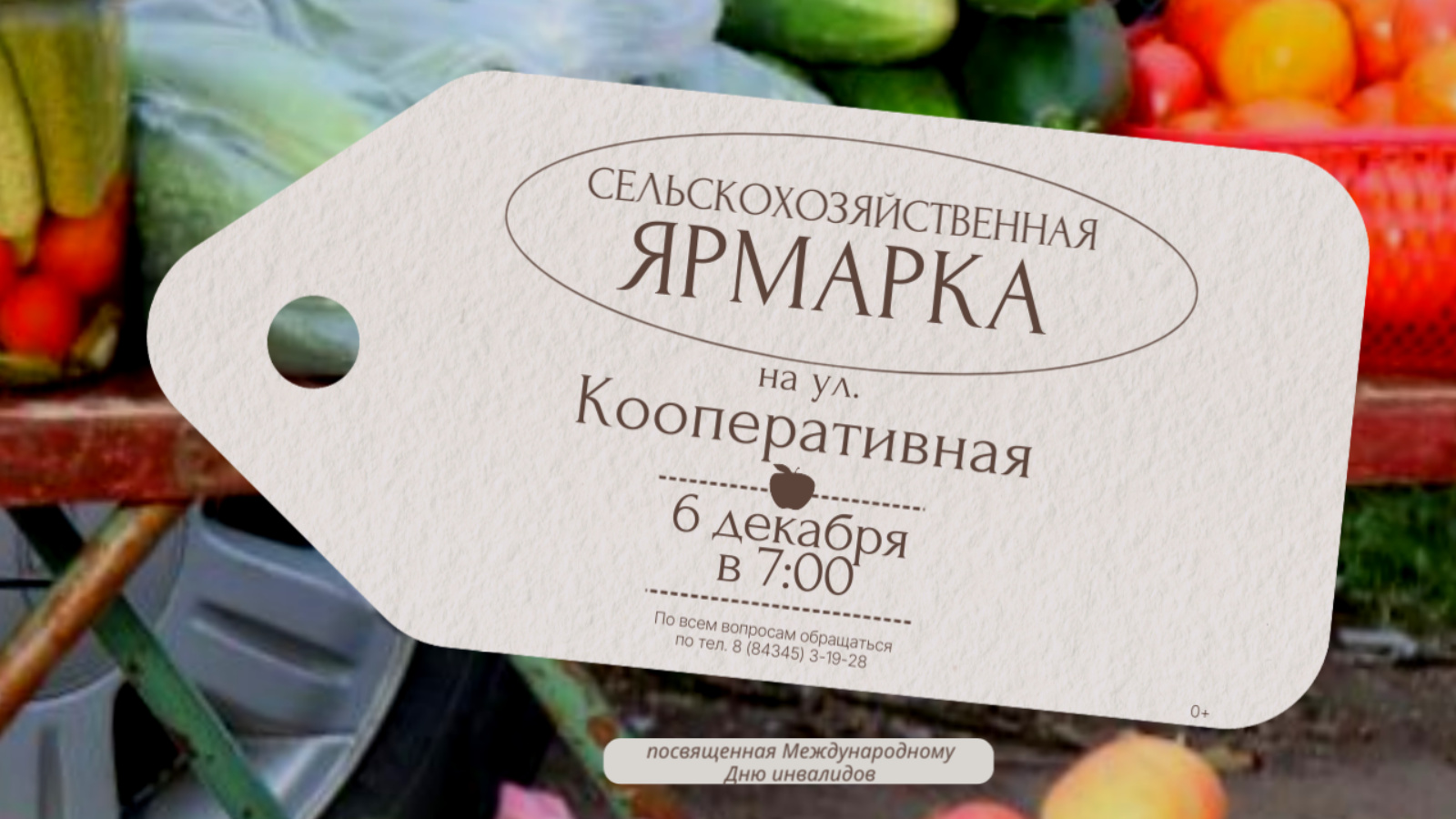 6 декабря на улице Кооперативной в Нурлате пройдёт сельскохозяйственная ярмарка, приуроченная к Международному дню инвалидов.