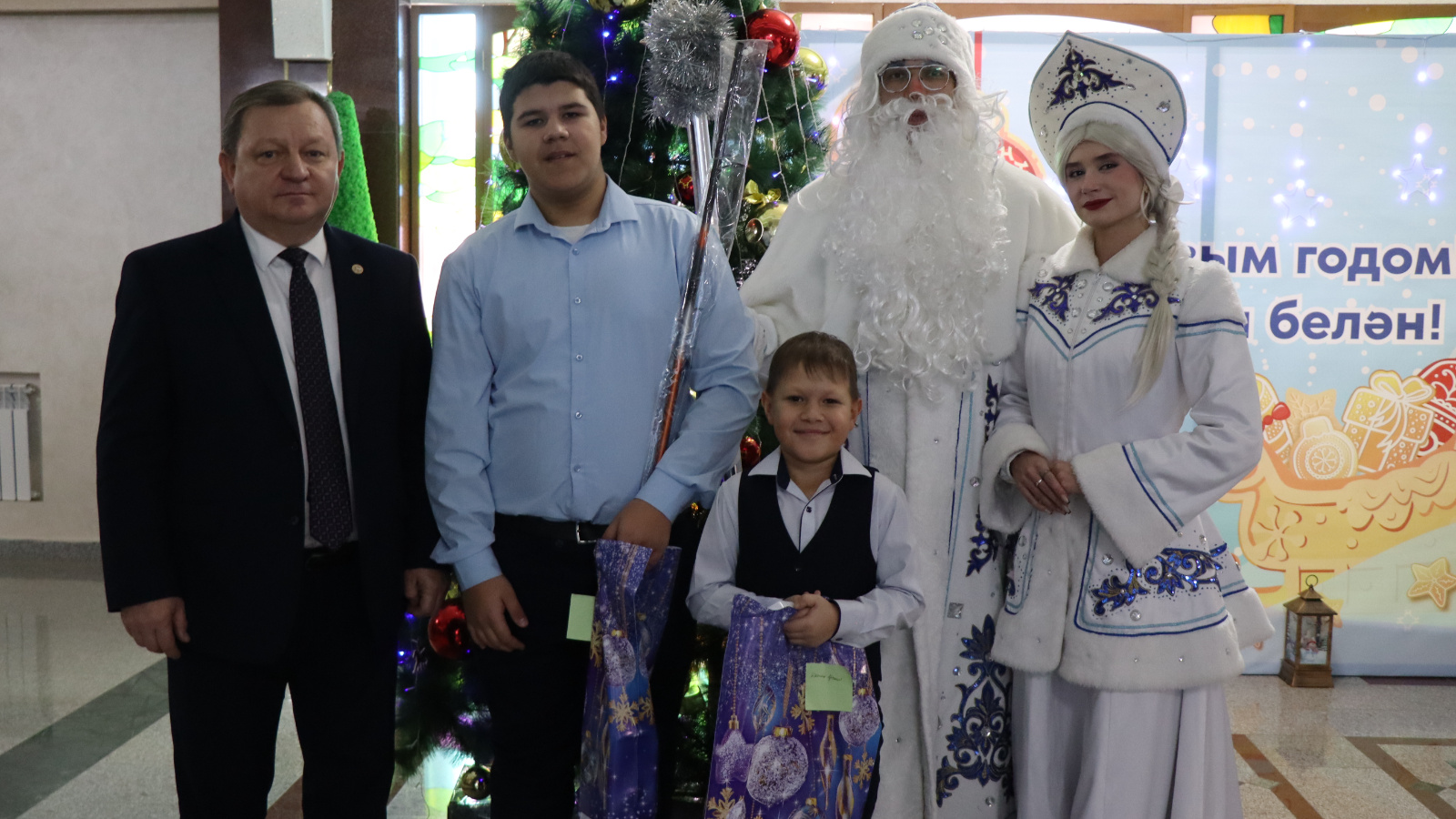 В рамках благотворительной акции «Елка желаний» Дедушка Мороз и Снегурочка помогли создать особую атмосферу праздника, где заветные детские мечты становились реальностью. Глава Нурлатского района Дамир Ишкинеев лично вручил долгожданные подарки братьям Артему и Арсению Дютиным. Это было одним из пожеланий, которое глава района исполнил в рамках акции – всего с «Елки желаний» он снял четыре снежинки.