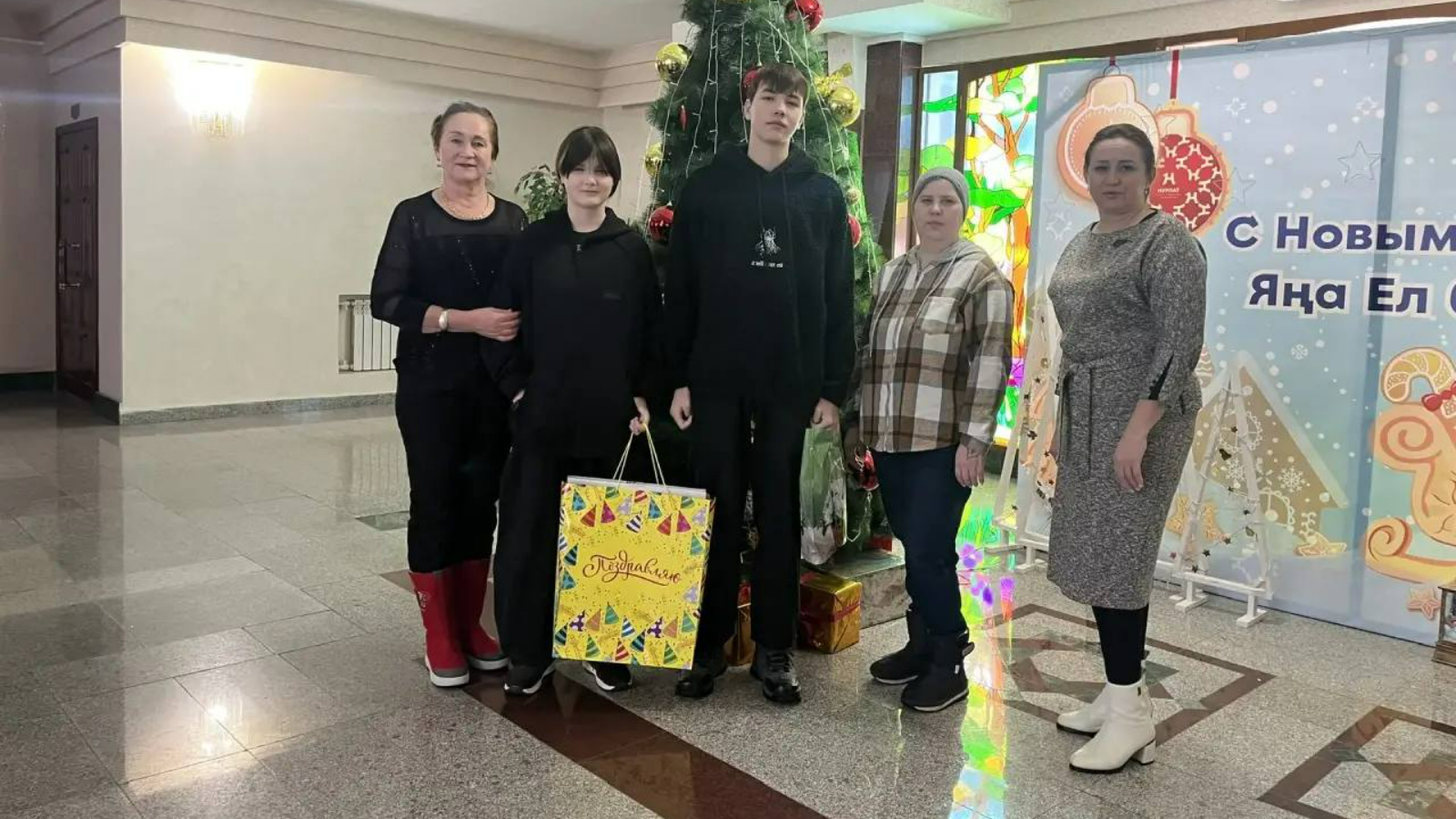 Во время мероприятия брат получил беспроводные наушники от Ралии Габдулловны, а сестра была счастлива получить картину по номерам от Разини Габдулловны. Детям также вручили и новогодние сладкие подарки.