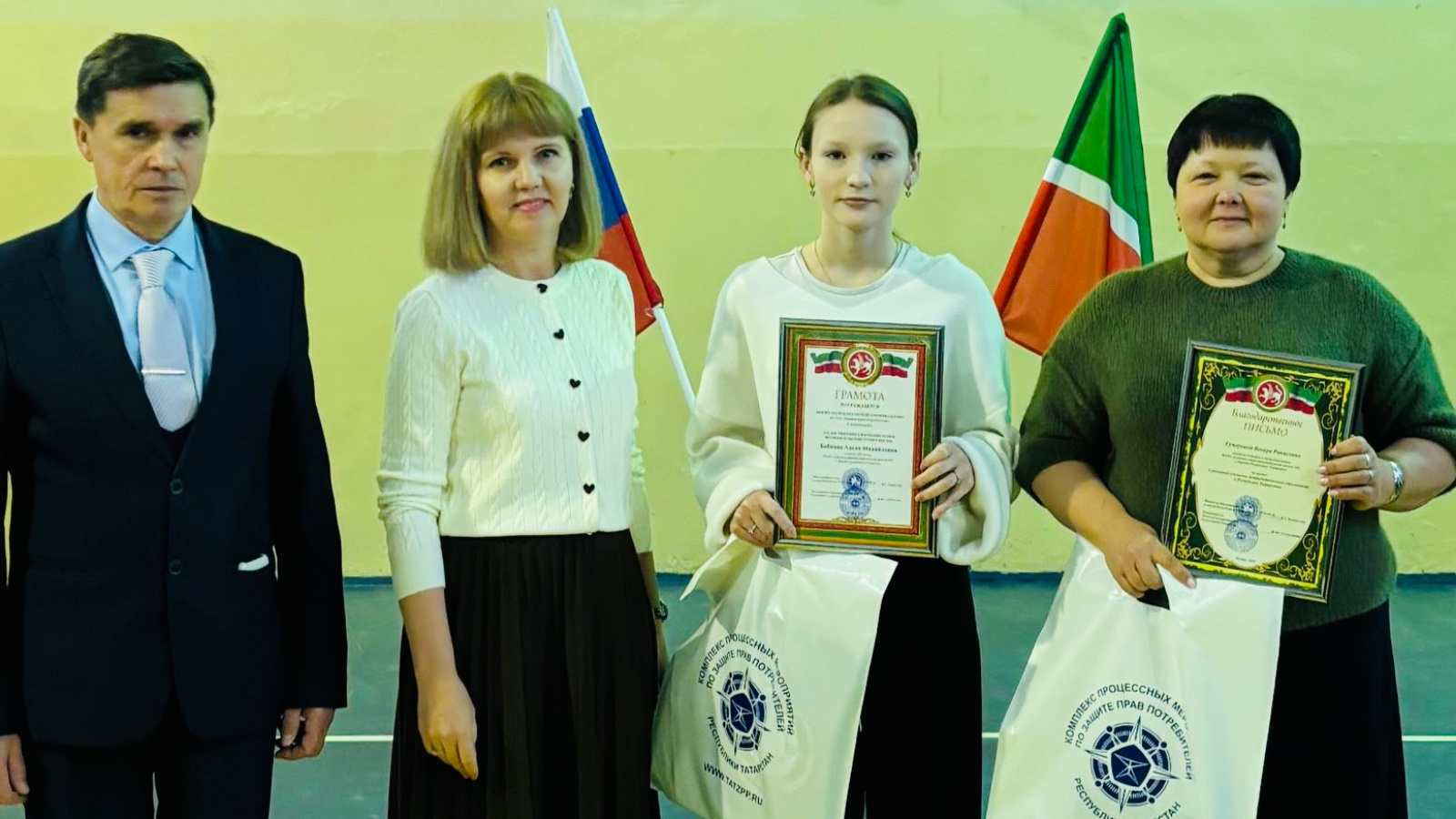 За вклад в развитие системы потребительского образования в Республике Татарстан благодарственными письмами Министра образования и науки Республики Татарстан и руководителя Госалкогольинспекции Республики Татарстан Жаудата Ахметханова награждена: