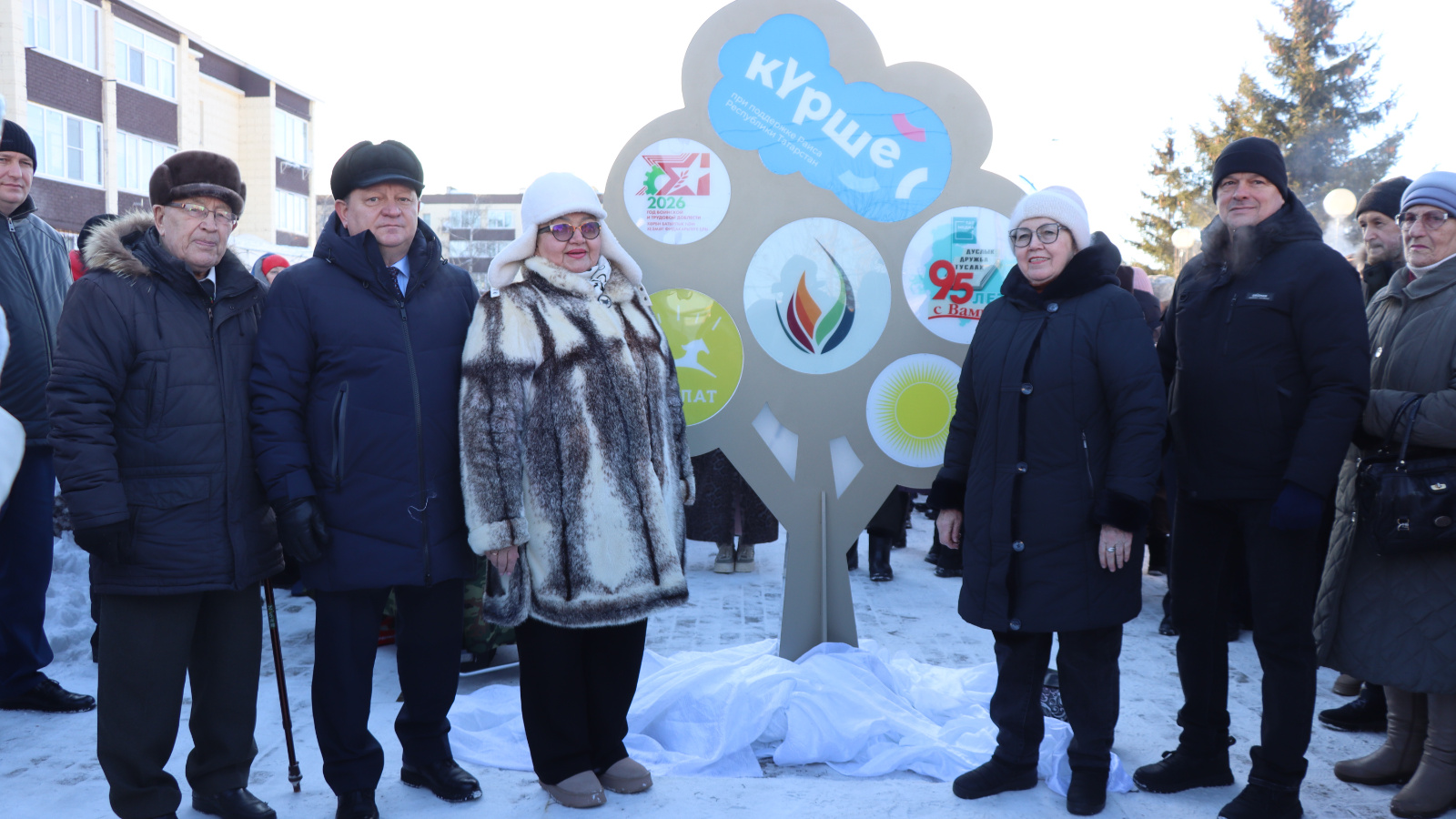Кульминацией праздника стало открытие световой архитектурной формы «Древо дружбы». Место для арт-объекта выбрано символично: сквер Журналистов находится рядом с «Кубом дружбы». Установка конструкции приурочена сразу к трем значимым датам: 95-летию районной газеты «Дуслык» («Дружба», «Туслах»), Году военной и трудовой доблести в Татарстане и Году народного единства в России. Над созданием объекта работали дизайнер Елена Мингалимова и предприниматель Айрат Мустафин.