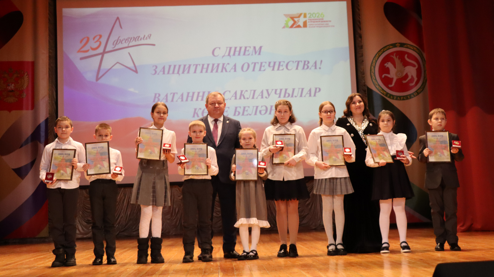 Торжественная часть мероприятия была отмечена церемониями награждения. За активную гражданскую позицию, вклад в поддержку бойцов и патриотическое воспитание молодежи ряд нурлатцев были удостоены почетных грамот, благодарственных писем и медалей «За содействие СВО».