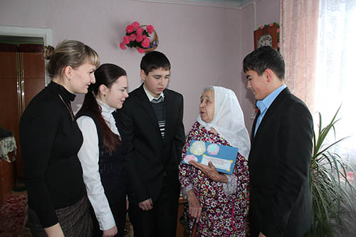 Сегодня работники КЦСОН «Гармония» вместе с учениками школы №2 выехали к бывшим жителям блокадного Ленинграда, всего в Нурлате таких 6 человек. Дети подготовили поделки для них, а ветераны в свою очередь поделились своими воспоминаниями о пережитом. В этот же день блокадникам от имени руководства района передали подарки.