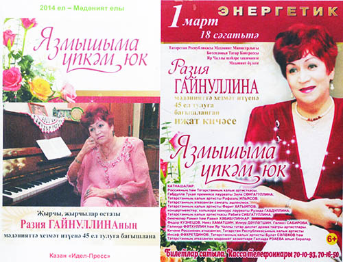 Подготовку к вечеру в Набережных Челнах начали уже давно. На днях выйдет в свет также сборник «Язмышыма үпкәм юк», в который вошли заметки, посвященные творчеству Разии Гайнуллиной. До этого ТРК «Нурлат» сняла клип на пять ее песен. На вечере наряду с известными деятелями искусств республики примут участие уже популярные и только-только завоевывающие сцену ученики Р.Гайнуллиной.