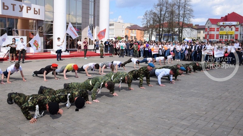 Бүген район мәктәпләре укучылары Мәдәният сарае каршындагы мәйданчыкта “Җиңү рекорды-2019” акциясенә кушылдылар.