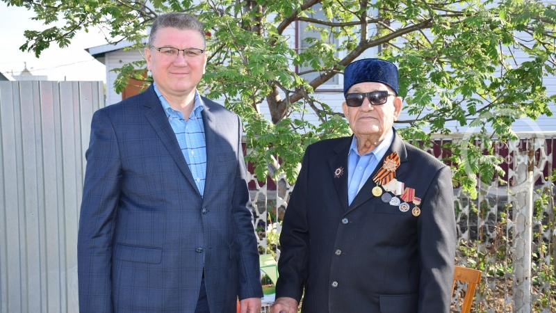 Бөек Җиңү көне алдыннан район башлыгы Алмаз Әхмәтшин Бөек Ватан сугышы ветераны Ирек Исхак улы Алишевны бәйрәм белән котлап, рәхмәтләрен белдерде.