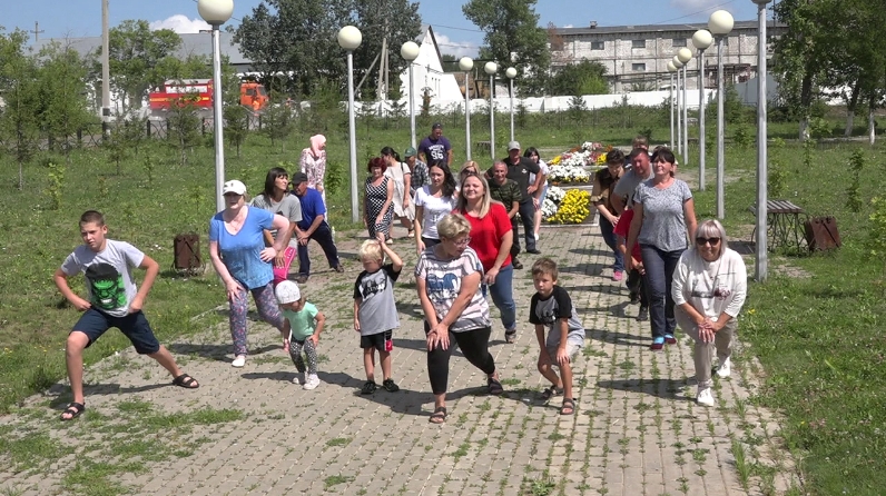 Дөресрәге, оныклары Нурлаттагы россияле әбиләре белән “Дуслык” скверындагы зарядкада катнаштылар.