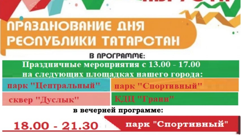 30 август – Республика көнендә Нурлатның төрле парклары, скверларында бәйрәм чаралары узачак.