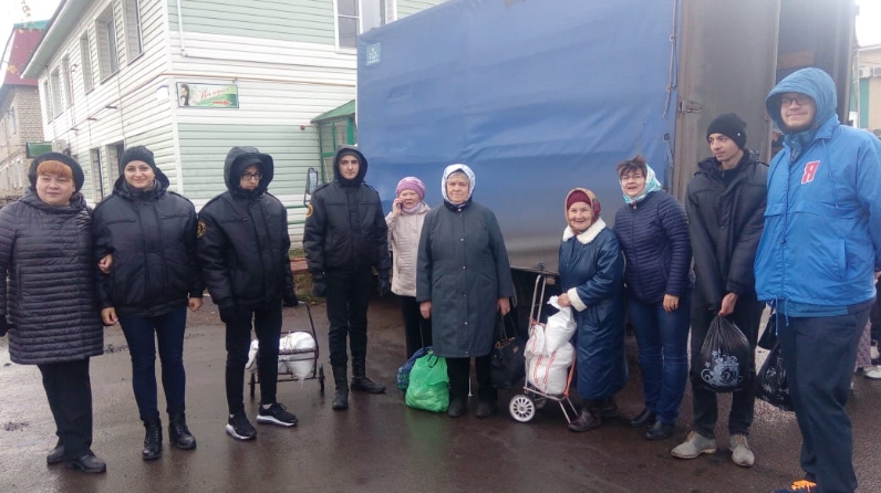 Узган ял көннәрендә Нурлатта үткән авыл хуҗалыгы ярминкәсендә районның “Бердәм Россиянең Яшь гвардия” һәм “Форпост” активисталары өлкән яшьтәге кешеләргә транспорт тукталышына кадәр сатып алган товарларын илтергә булыштылар.