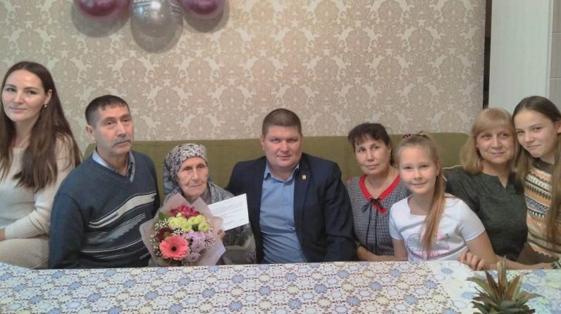 Бүген Нурлата яшәүче тыл хезмәтчәне Аксиния Николаевна Герасимова 90 яше тулу уңаеннан котлаулар кабул итә.