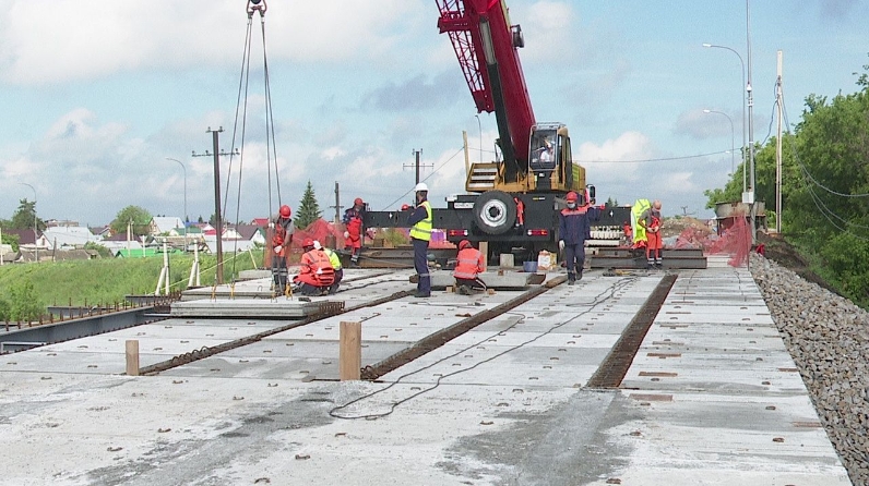 Тимербетон плитәләрне монтажлау эшләре азагына якынлаша. Алда юл өслеген төзекләндерү эшләре.