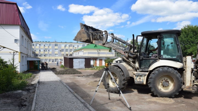 Бу көннәрдә Пугкин урамы 45 һәм 47 нче йортлар ишегалларында эш тулы куәтенә бара. Эшчеләр тротуар түшиләр, техника асфальт түшәргә әзерләнә.