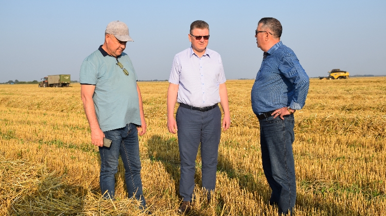 "Сөләманов Ә.И" хуҗалыгының Кәкре Атау авылы янындагы сабан бодае басуында эшләрнең барышы белән район башлыгы Алмаз Әхмәтшин танышты. Бүгенге көндә хуҗалыкта урып -җыю эшләре 37 процентка төгәлләнгән, бөртеклеләрнең уртача уңышы - гектардан 50 центнердан артык.