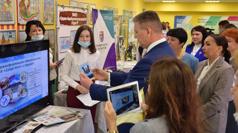Конференция эшендә район башлыгы Алмаз Әхмәтшин, Татарстан Республикасы Мәгариф һәм фән министрлыгының мәгариф өлкәсендә күзәтчелек һәм контроль департаментының бүлек начальнигы Гүзәл Мөхәррамова, район башкарма комитеты җитәкчесе урынбасары Ләйсән Нәфыйгина катнашты. Пленар утырышка кадәр кунаклар методик күргәзмә белән таныштылар.