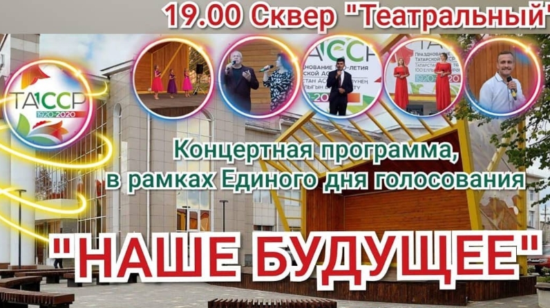 Концерт "Театр" скверы ачык сәхнәсендә 19.00 сәгатьтә башлана.