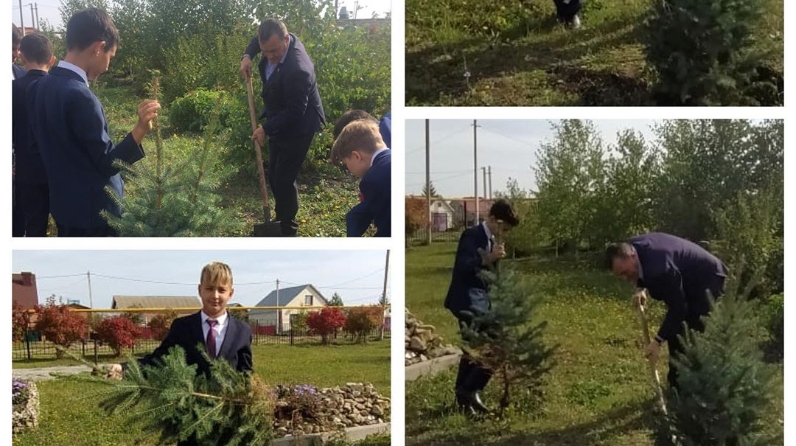 Бүген Нурлат гимназиясенең технология укытучысы Фәнис Гаязов җитәкчелегендә кече паркка чыршылар утырттылар.