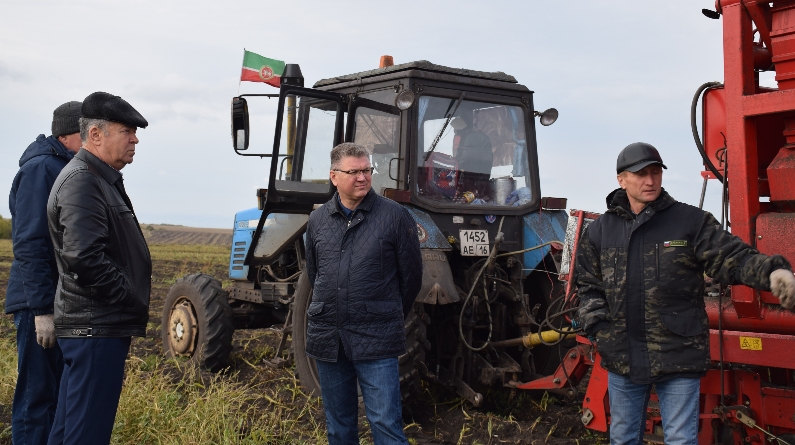 Нурлат муниципаль районы башлыгы Алмаз Әхмәтшин "Сөләйманов Ә.И" КФХ сында бу көннәрдә уңыш җыю актив барган бәрәңге басуында булды.