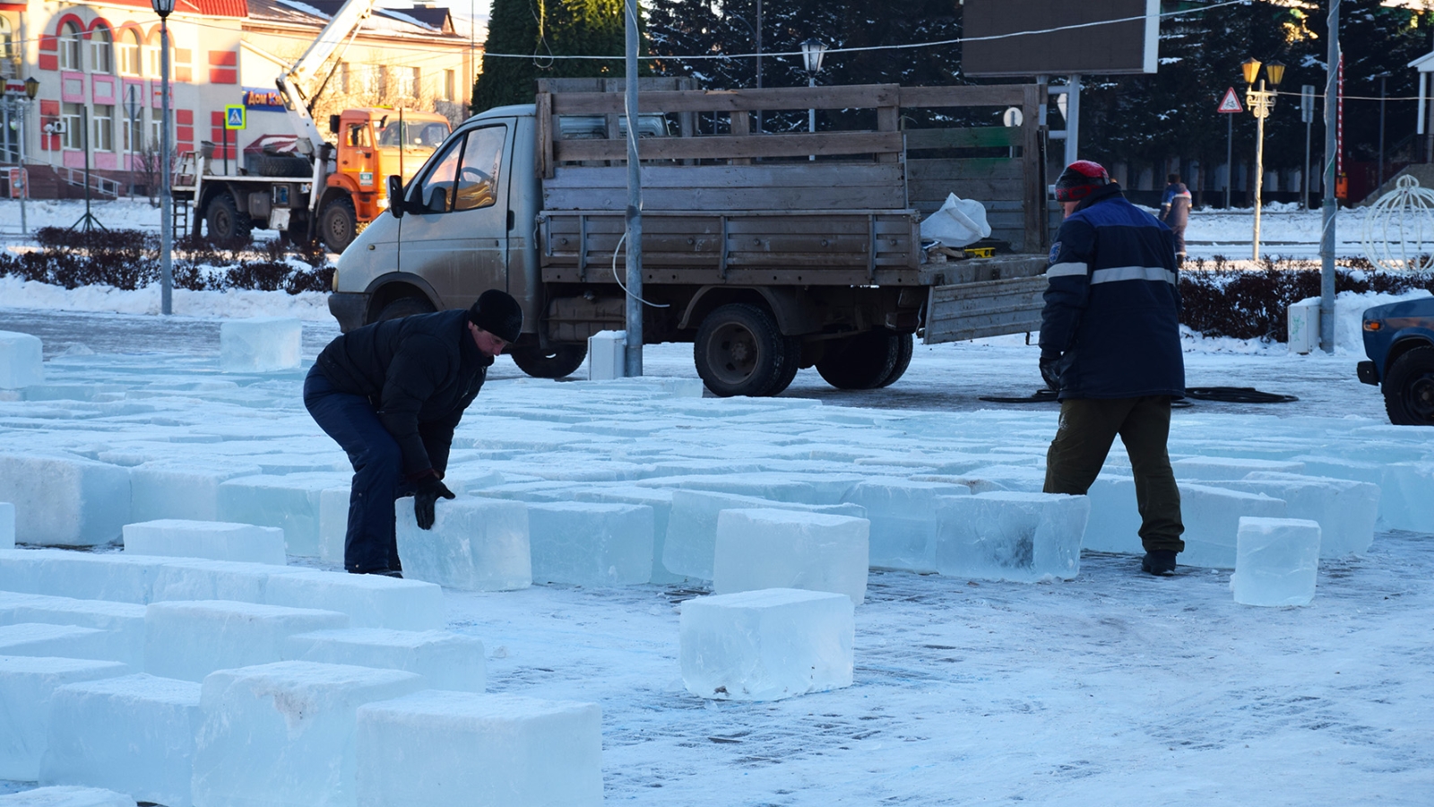 Бу көннәрдә Яңа ел чыршысы куелган Нурлат шәһәренең үзәк мәйданында лабиринтны боздан җыю процессы бара.
