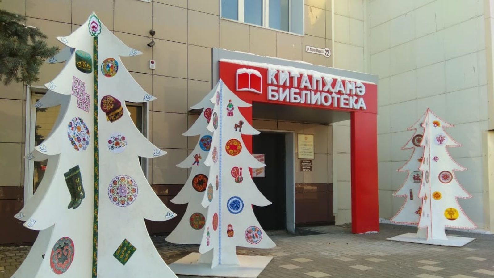 Шәһәр китапханәсе янындагы этно-чыршылар Яңа елга коллективының символик сәламләве булды.