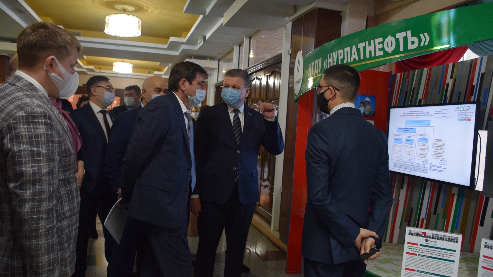 Җирле җитештерүчеләрнең продукциясе белән Нурлат районы Башлыгы Алмаз Әхмәтшин озатуында ТР Дәүләт Советы депутаты, ТР Дәүләт Советы рәисе урынбасары Юрий Камалтынов танышты.