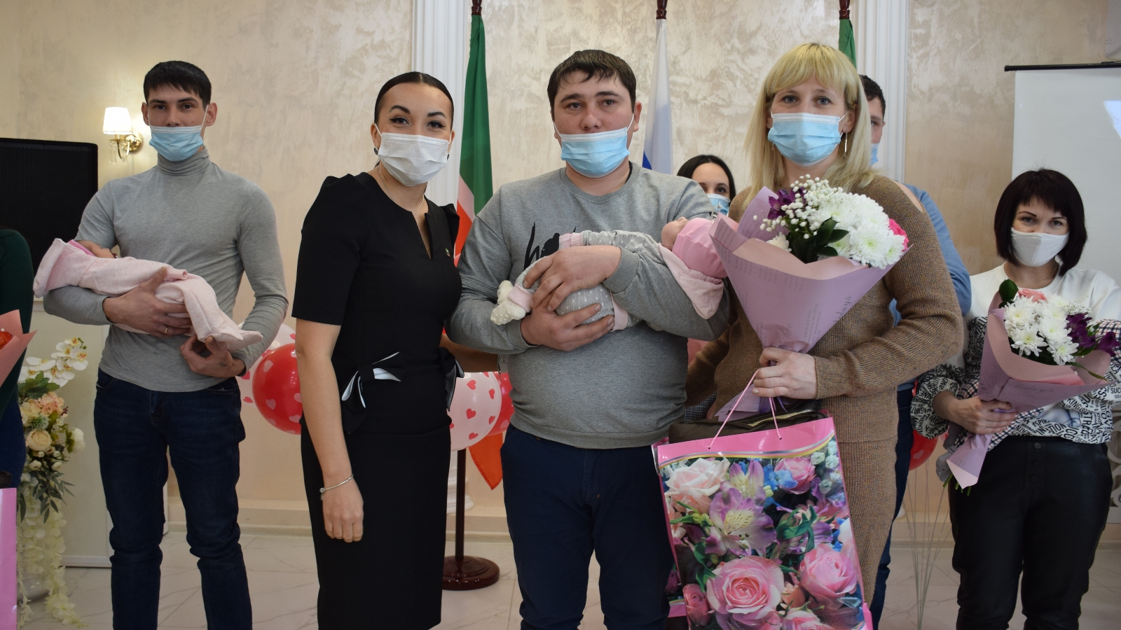 Район Башкарма комитеты җитәкчесенең социаль мәсьәләләр буенча урынбасары Ләйсән Нәфыйгина нәниләрне һәм аларның әти-әниләрен әлеге шатлыклы вакыйга белән котлап, гаиләләргә истәлекле бүләкләр тапшырды.
