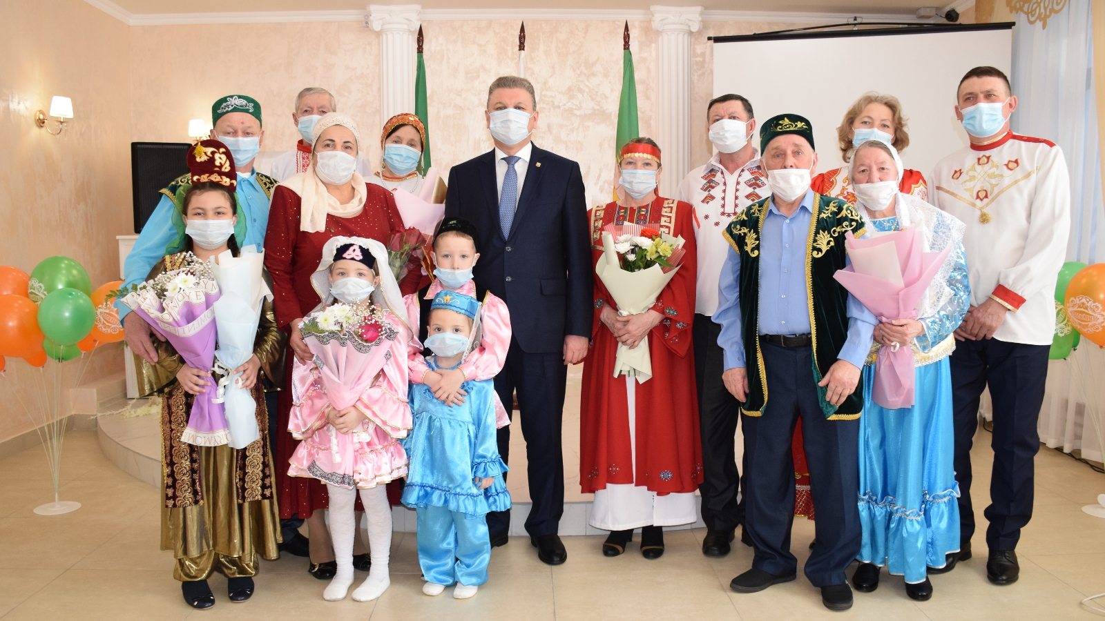 Нурлат шәһәренең Никахлашу сараенда тантаналы шартларда гаилә тормышының биш парын - юбилярларын хөрмәтләделәр. Алар милли киемнәрдән килделәр, бу ТРда Туган телләр һәм халыклар бердәмлеге елында символик мәгънәгә ия булды.