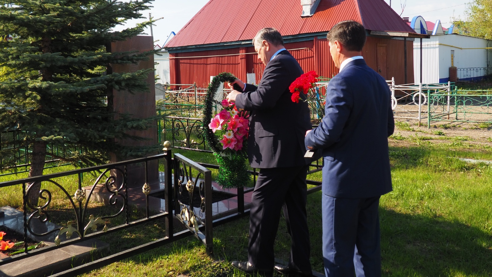 Иртәдән үк Үзәк мөселман зиратында алар күп еллар гомерен район үсешенә багышлаган нурлатлыларның каберләрендә булдылар. Гыйматдинов Габбас Кыям улы, Хафизов Шәриф Сәгыйр улы, Тимерҗанов Зәки Тимерҗан улы каберләренә Җиңү символларының берсе буларак кызыл канәфер чәчәкләре куелды.