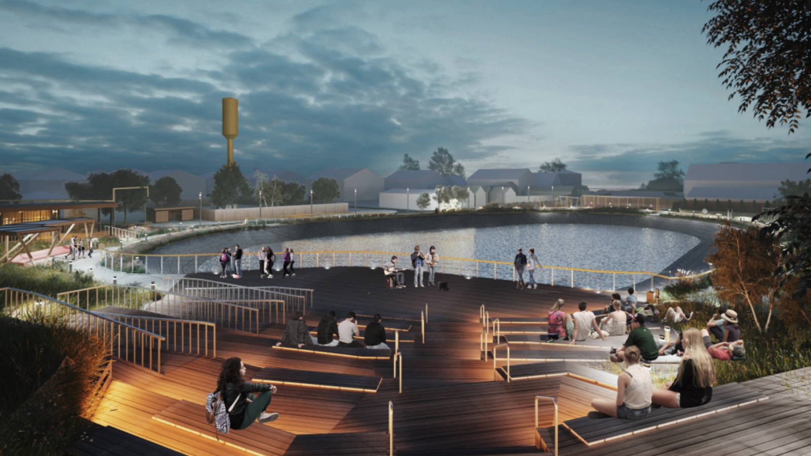 Халыкның аз хәрәкәтләнүче төркемнәре өчен уңайлы мохит – пандус, шулай ук парковка урыннары, яктырткычлар, яшел зоналар, эскәмияләр, аэрация өчен – фонтан кую каралган. “Биредә балкып торган ат - сезнең шәһәр символы да урынлы булачак", - диде Казан проект оешмасы башкарма директоры Артур Ураскузин. Проектлауның мөһим этабы булып иҗтимагый тыңлаулар булган, проектлаучы әйтүенчә, бу чаралар функциональ программаны, кешеләрнең теләкләрен формалаштырырга мөмкинлек биргән. Шуңа күрә аларның куркынычсызлык, үтемлелек, функциональлек һәм тиңдәшлеге турындагы тәкъдимнәре проектның төп принциплары буларак тәкъдим ителгән. "Ә куркынычсызлыкны тәэмин итү өчен күл периметры чикләнә, шуңа күрә аерым төшү һәм ял итү зонасы проектланган - шәһәр халкының су янына килү мөмкинлеге өчен", - диде Артур Әмир улы, объектның уникаль якларын – җир үзенчәлеген, табигый ландшафтны билгеләп. Бу көннәрдә биредә уртача 11-12 кеше эшли. Әйтергә кирәк, проектлаучылар монда булган инженерлык коммуникацияләрен, аерым алганда, газүткәргечләрне дә файдалы кулланганнар: сары торбалар бу иҗтимагый киңлекнең дизайн-кодын формалаштыру алгоритмы булачак.