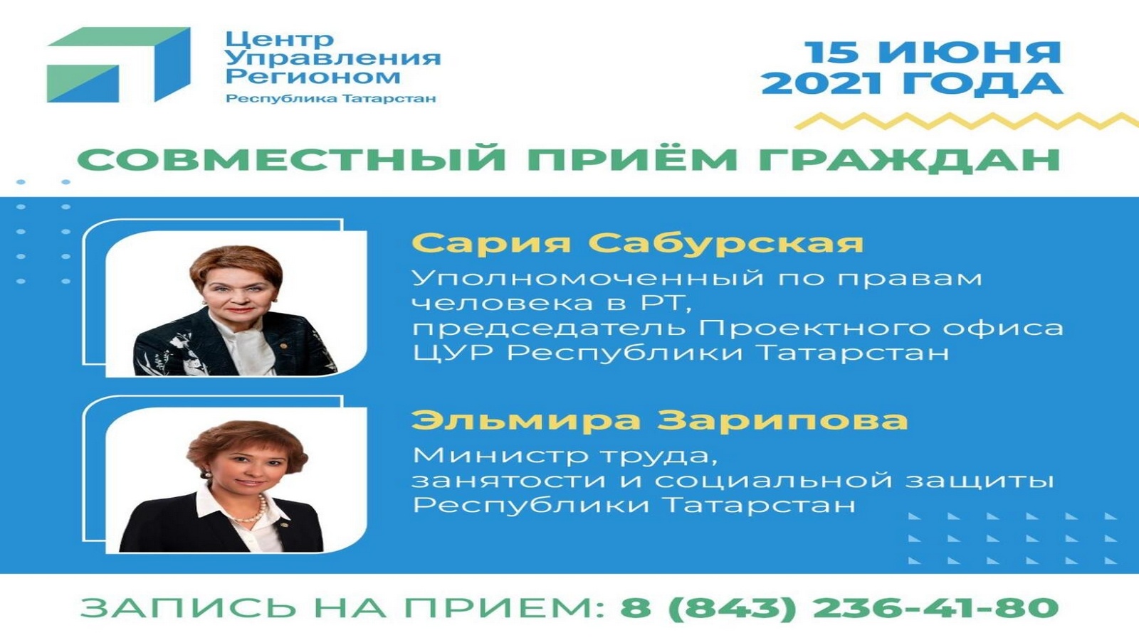 Татарстан Республикасында Кеше хокуклары буенча вәкаләтле вәкил һәм ТР Хезмәт, мәшгульлек һәм социаль яклау министры гражданнарны бергәләп кабул итәчәк