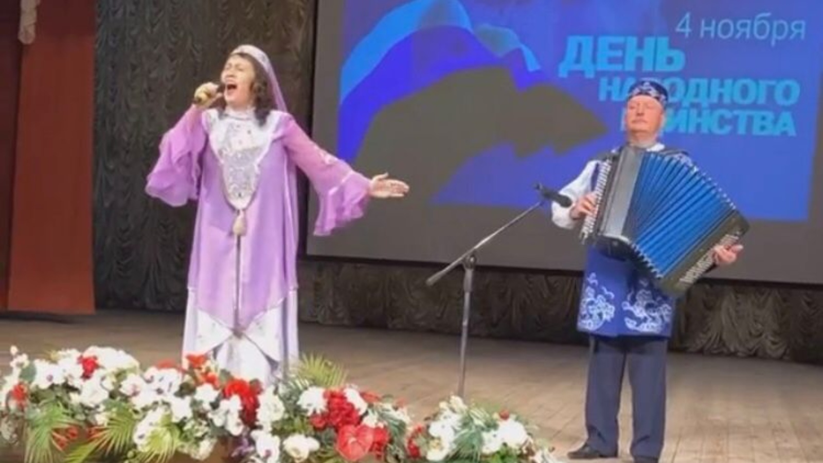 Шәһәр Мәдәният сарае сәхнәсендә артистлар Фәүзия Кәлимуллина, Марина Казакова, Рушания Гомәрова, Олеся Илифанова, Миләүшә Галимова чыгыш ясады һәм иң матур җырларын бүләк итте. Баянчы Сәмигулла Рәхмәтуллин аккомпанементы астында җырлар аеруча моңлы яңгырады.