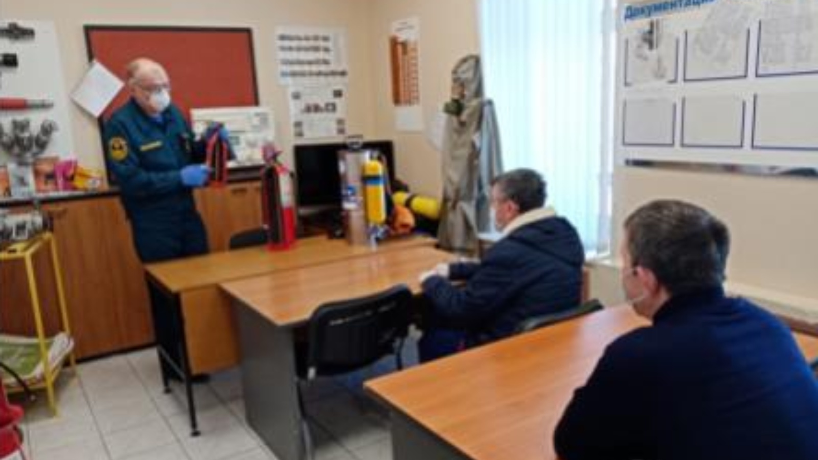 Фоторәсемдә: ОПП инженеры Панарин Сергей Михайлович уку классында инструктаж үткәрә.