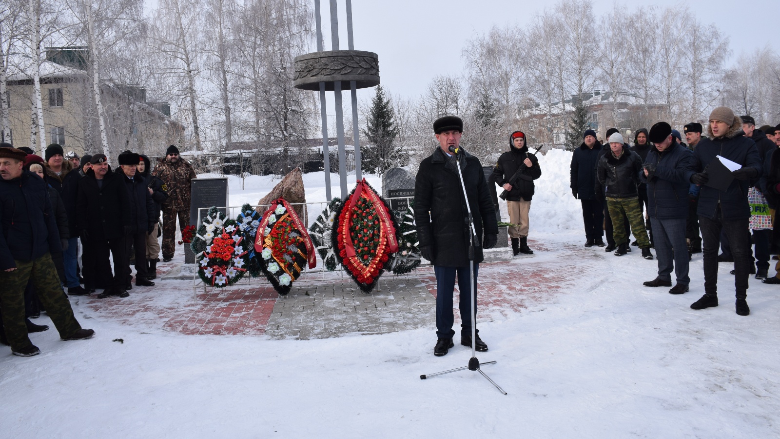 Нурлат районы хәрби комиссары Закир Абдуллин сугыш хәрәкәтләрендә һәлак булган һәм тыныч вакытта алган яралардан вафат булганнарны искә алыр өчен бер минут тынлык игълан итте.