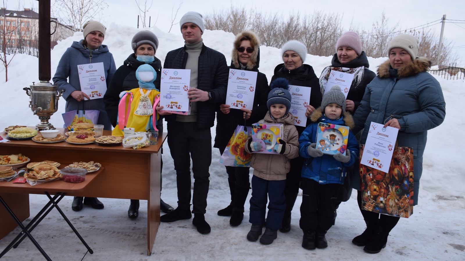 Бәйрәмнең төп символы - киендерелгән карачкы булды, символик рәвештә яндырып, салкыннар һәм кыш белән саубуллаштылар. Соңыннан бергәләп кайнар самавырдан чәй, коймак һәм тәм-томнар белән сыйландык.