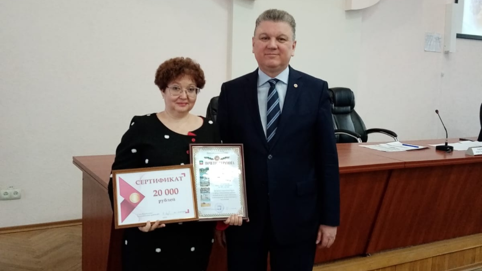 Кичә җитәкчеләр катнашында узган гомумшәһәр планеркасында район Башлыгы Алмаз Әхмәтшин Нурлат гимназиясенең технология укытучысы Наталия Кутузованы Мактау грамотасы һәм акчалата сертификат белән бүләкләде.