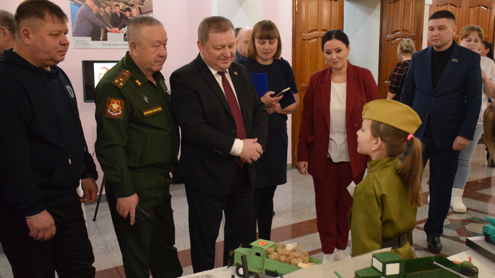 Әлеге вакыйгага Мәдәният сарае фойесында якташыбызның фотоэшләре, шулай ук хәрби техника макетлары күргәзмәләре оештырылды. Район Башлыгы Дамир Ишкинеев, район хәрби комиссары Заһир Абдуллин, кыска вакытлы ялга кайткан СВО сугышчылары күргәзмәләр белән танышып, чараның тантаналы өлешендә катнашты. Ватанны саклаучылар елына һәм Җиңүнең 80 еллыгына багышланган чараларга Дамир Ишкинеев старт бирде, шулай ук Ватанны саклаучылар көне белән котлады. Аның билгеләп үтүенчә, бу даталар Ватанга хезмәт итүнең, аның намусын һәм иреген саклауның нәрсә икәнен тагын бер кат искә төшерергә тиеш.