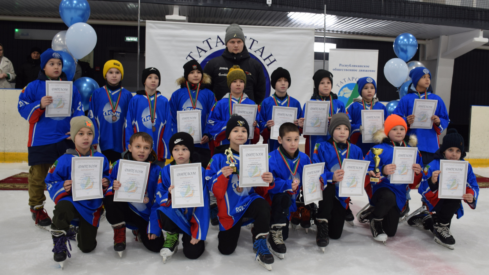 Яшь хоккейчыларны һәм тренер Илья Романовны республика ярышларында беренче уңышлары белән Нурлат районы башлыгы Дамир Ишкинеев котлады.