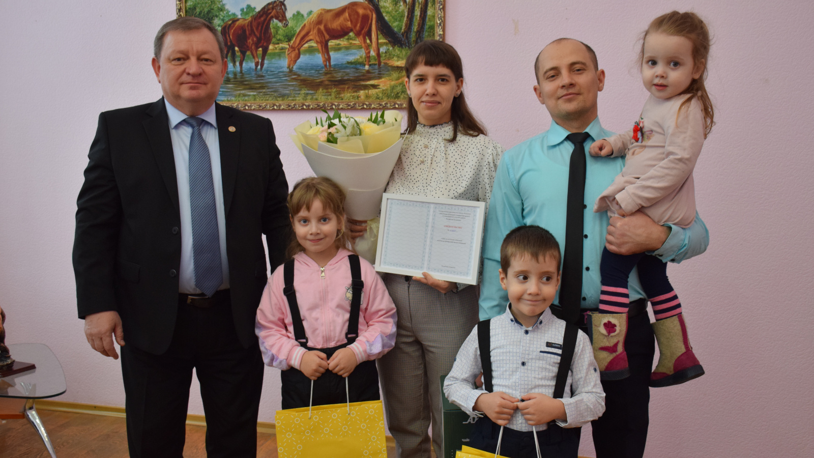 Нурлат районы Башлыгы Дамир Ишкинеев Водяновлар гаиләсенә торак алу өчен социаль түләү алу хокукы турында таныклыкны тапшырды.