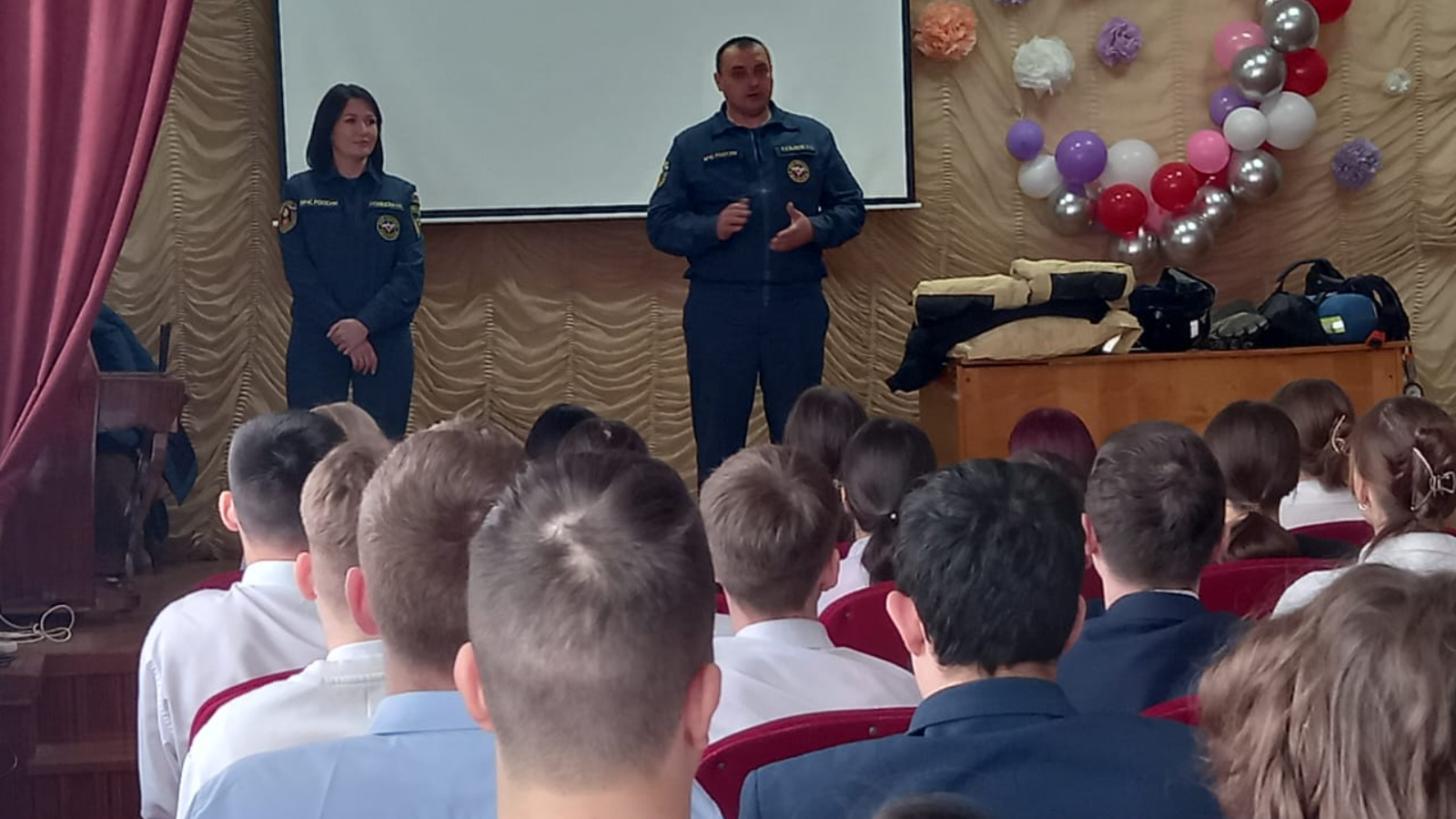 Янгын сүндерүчеләр янгын чыгуны һәм гадәттән тыш хәлләрне ничек булдырмаска, шулай ук янгын очрагында ничек эш итәргә кирәклеге турында сөйләде. Укучыларга ашыгыч хезмәт номерларын, суда куркынычсызлык кагыйдәләрен искә төшерделәр һәм җылытканда юка бозга чыгуның куркыныч булуы турында кисәттеләр.