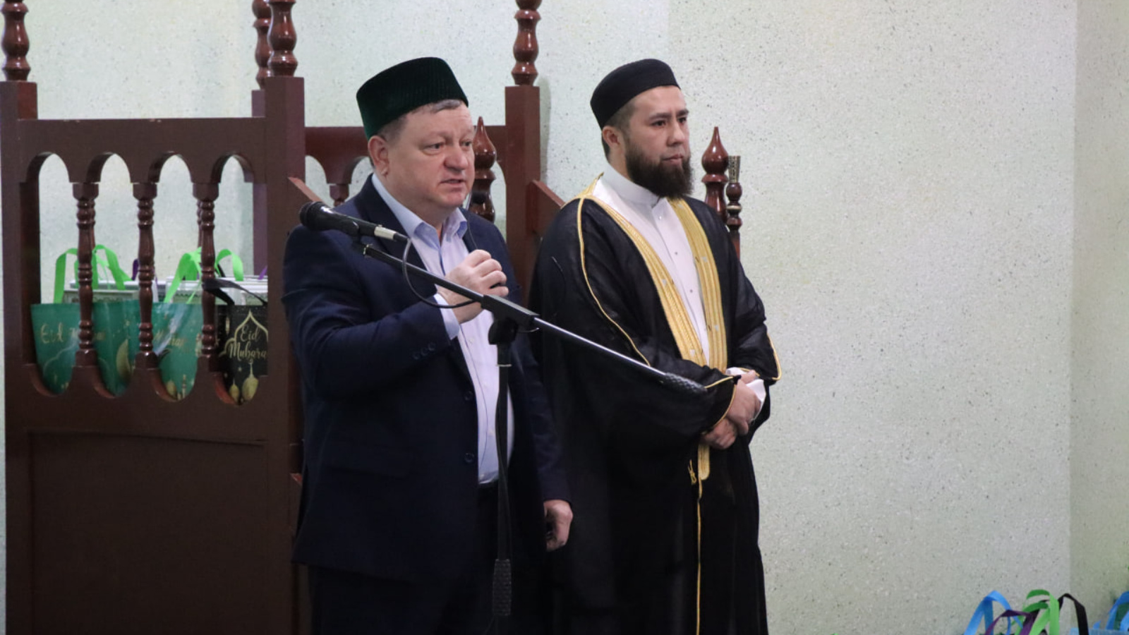 Бәйрәм вәгазен Үзәк мәчетнең имам-хатыйбы, район имам-мөхтәсибе ярдәмчесе Руслан хәзрәт Фәрхетдинов үткәрде. Ул шулай ук мөселманнарны котлады һәм мәчет аксакалларына һәм Ислам нигезләрен өйрәнүче балаларга бүләкләр тапшырды. Үзенең чыгышында имам район Башлыгы Дамир Ишкинеевка һәрьяклап ярдәм иткәне өчен рәхмәт белдерде һәм аңа сәламәтлек, иминлек, районыбызга үсештә булуын теләде.