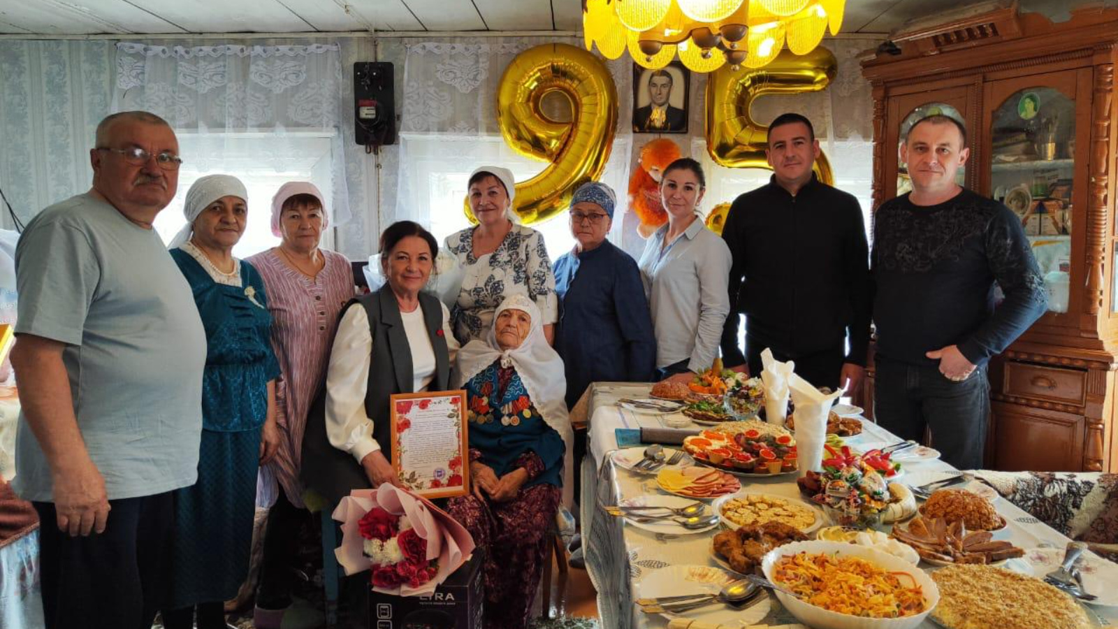 Тыл хезмәтчәне Гөлминкә Шакирҗан кызы Морадыймова 95 яшьлек юбилее уңаеннан Россия Федерациясе Президенты Владимир Путинның, Нурлат районы Башлыгы Дамир Ишкинеевның котлауларын кабул итте.
