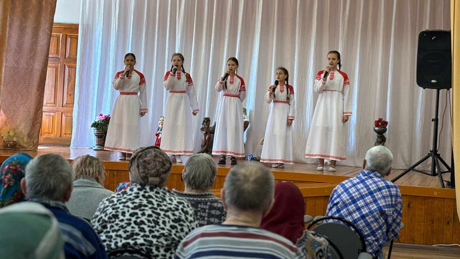 Яшь артистлар тамашачыларга ихлас хисләр бүләк итте - алар башкаруында рухи җырлар яңгырады, ә дәртле биюләр өлкәннәрнең кәефен күтәрде.