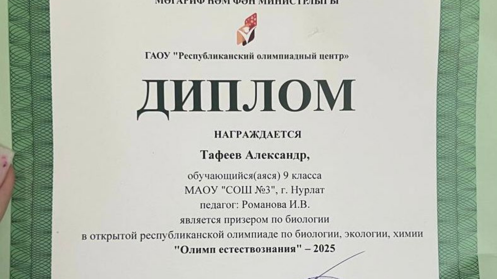 Эмиль белән Александрга укуларында уңышлар һәм фән өлкәсендә яңа җиңүләр телибез! “Табигать фәннәре Олимпы" сезнең өчен зур ачышларга һәм казанышларга этәргеч булсын!