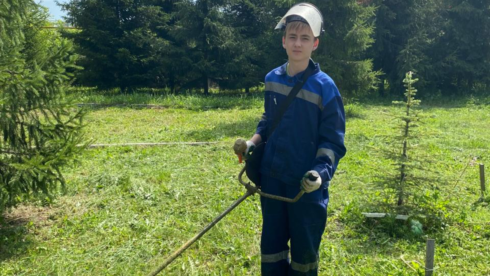 Аграр техникум студенты Рәүхәт Зәйнуллин төрле техника белән ышанычлы идарә итә — триммермы ул, газон чапкычмы, аның кулындагы теләсә нинди инструмент нәтиҗәле эшли.
