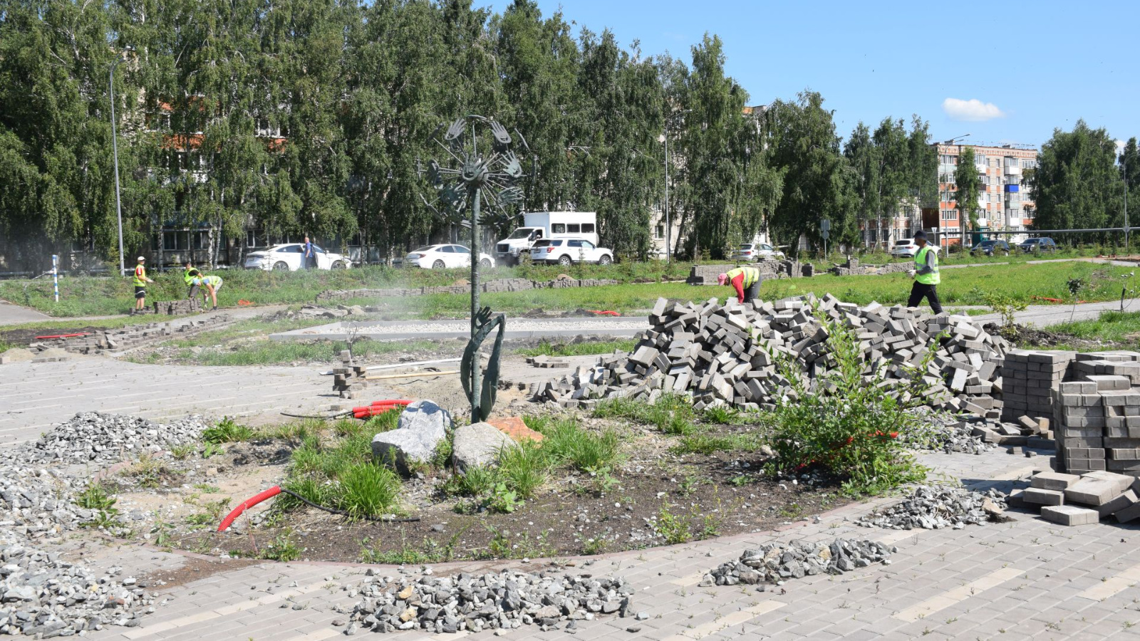 Хәзерге вакытта мәйданчыкта балаларга кече архитектур формаларын урнаштыру өчен нигезен бетонлау бара, аның өслеге резина булачак. Дамир Ишкинеев белгечләр белән скверга керү урыннары, яңа кече архитектура формалары һәм башка конструкцияләр урнаштыру, яктылык утларын кую мәсьәләләре буенча фикер алышты. Әлеге объектны яңарту эшләре апрельдә башланды. Аларның барышына яңгырлар йогынты ясауга карамастан, подряд оешмасы җитәкчесе, аны тәмамлау вакытына 15 августка кадәр өлгерәчәкләр, графиктан тайпылмас өчен техника һәм кешеләр җитәрлек, дип ышандырды. Эшләрнең гомуми күләменә яшелләндерү дә керә, монда өстәмә рәвештә агачлар утыртачаклар.